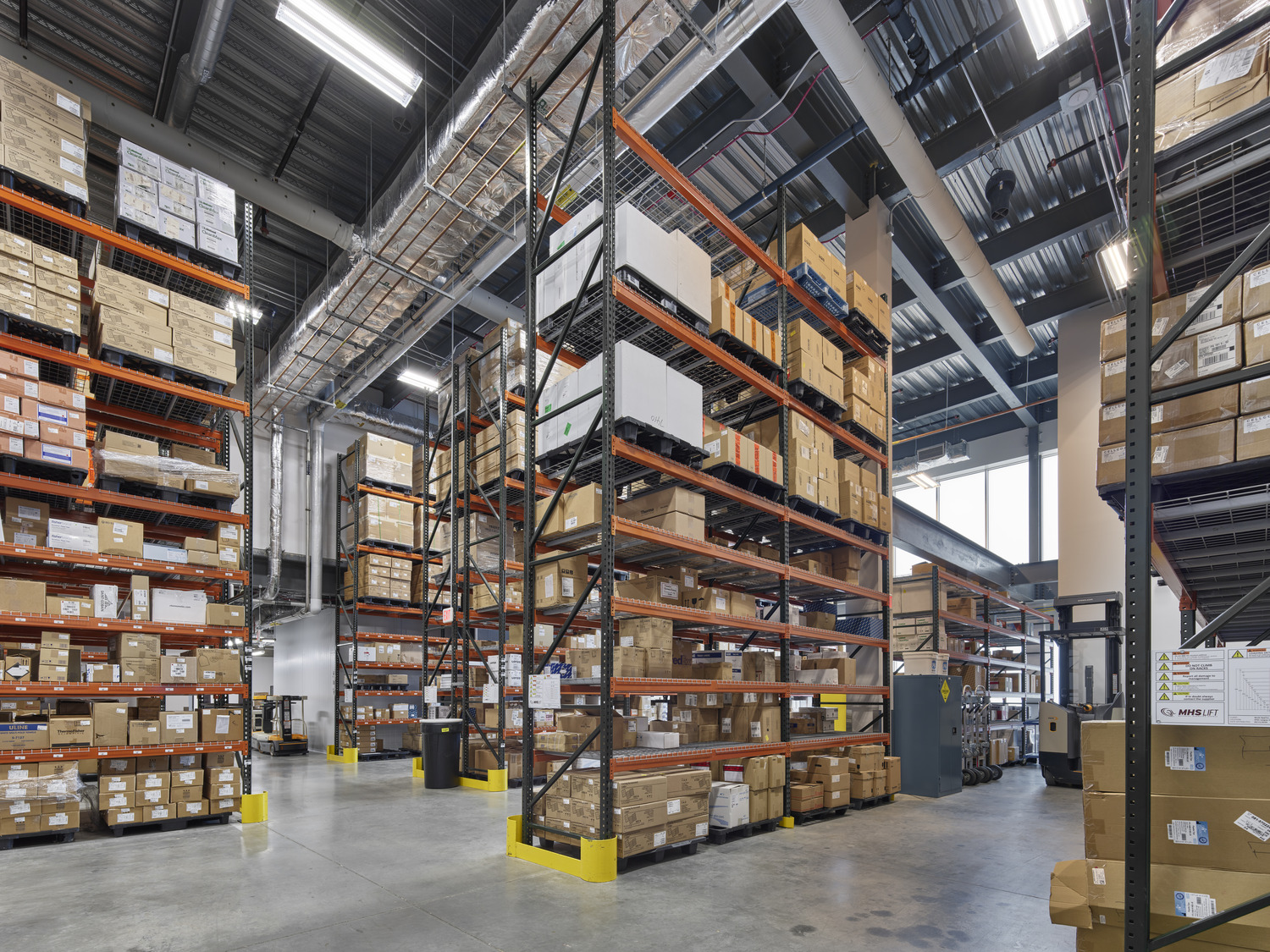 To reduce our environmental impact, we implement numerous sustainable design features including insulated metal panel shell for continuous insulation, white thermoplastic polyolefin (TPO) roofing to reduce heat absorption; drive-in truck docks to eliminate traditional heat losses at truck docks doors; and an early suppression fast response (ESFR) sprinkler system to eliminate the need for poorly insulated heat/smoke vents in the roof.