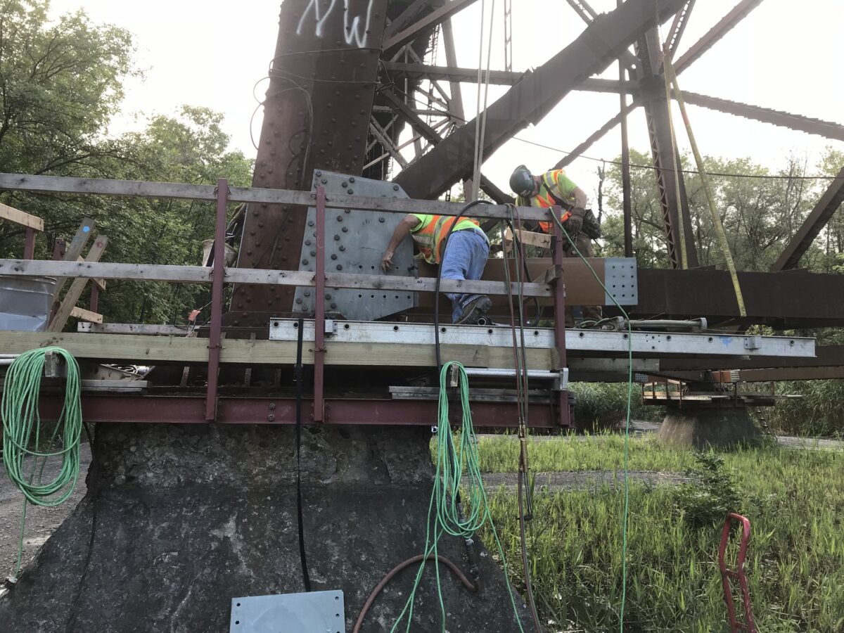 Stretching 5,255 feet across the Hudson River near Castleton, New York, CSX’s Bridge at Milepost QG 8.48 is the kind of structure that doesn’t have an easy replacement. Originally constructed in 1921, the bridge features 602-foot and 409-foot truss main spans, 52 approach girder spans, and 25 steel towers ranging from 30 to 135 feet in height. It remains a vital link in CSX’s network, and the railroad retained our firm to perform a multi-year rehabilitation evaluation and design project to extend its service life while keeping rail operations running.