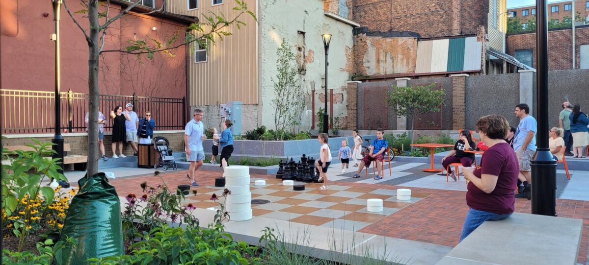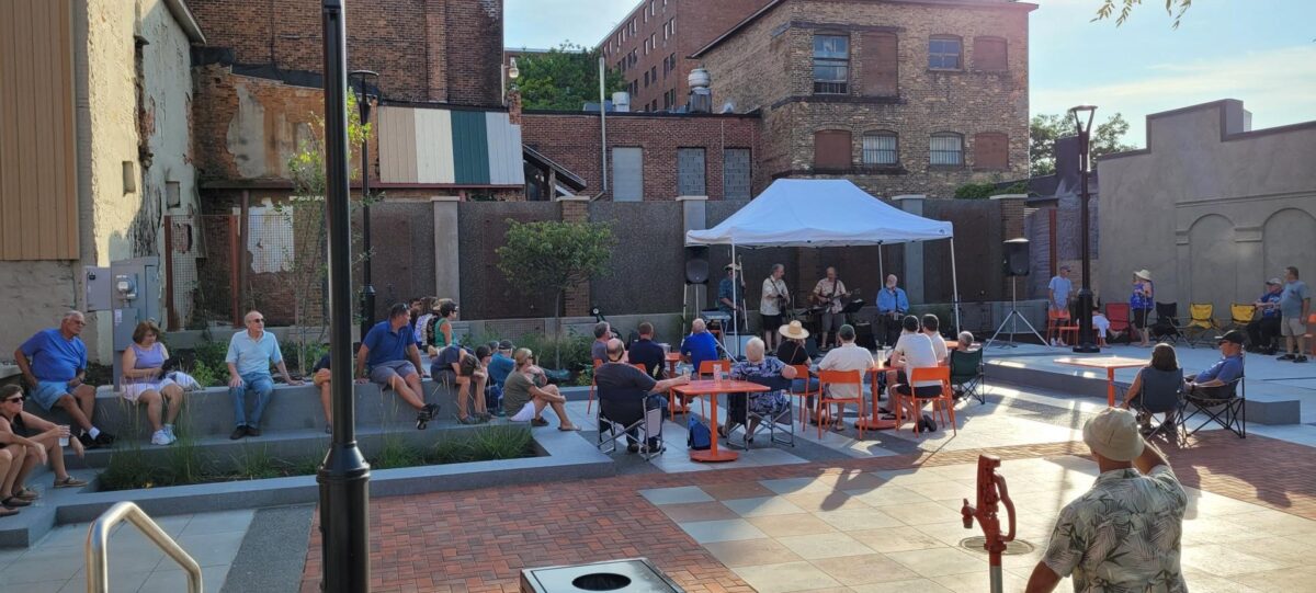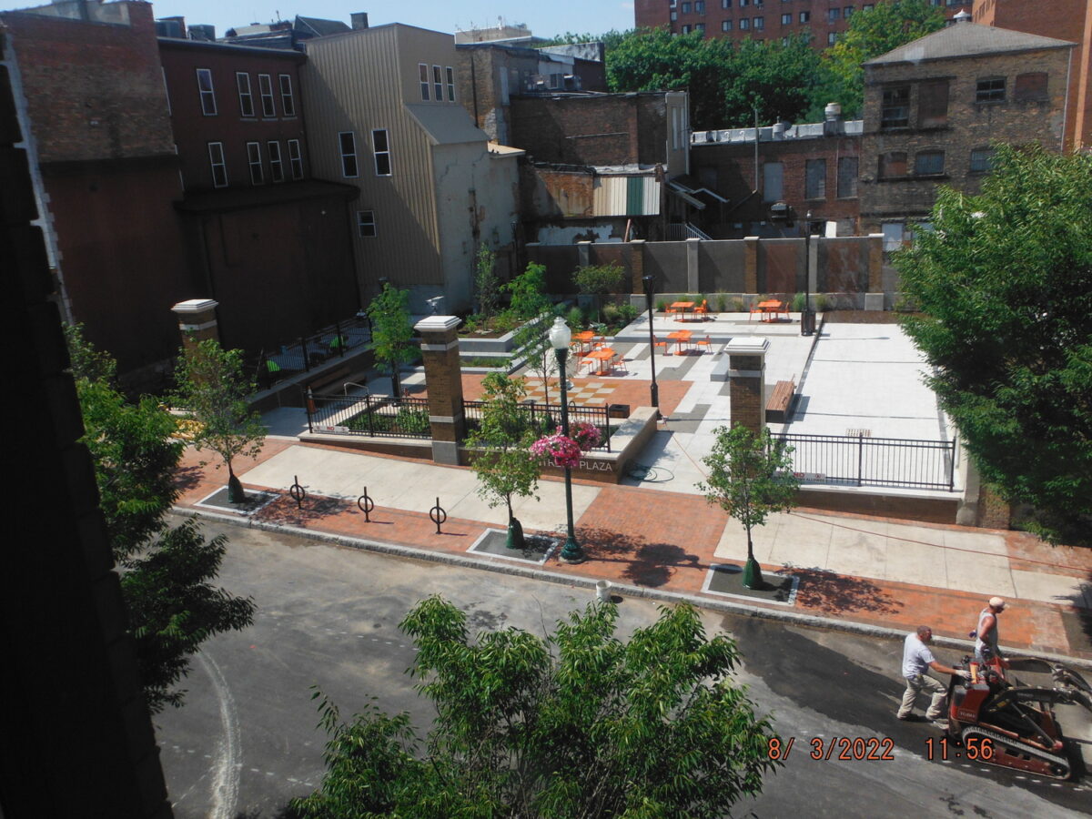 In the heart of downtown Auburn, a gap in the streetscape told a familiar story. When the former Kalet’s department store was demolished in 2015, it left behind more than an empty lot at 1-7 State Street. It left a missing piece in the fabric of a community. Through the Auburn Sparks Brownfield Opportunity Area study, a market conditions analysis pointed toward a new purpose for the site: a public green and outdoor urban plaza designed to host arts, cultural, and performance events.
