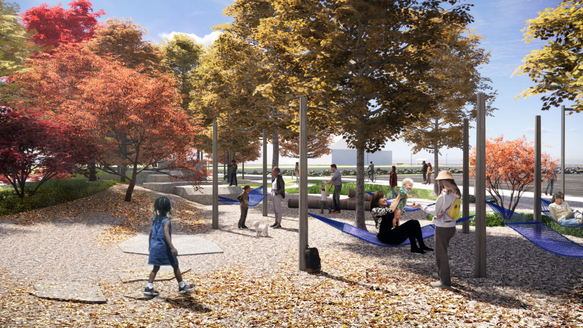 The project also integrates a wide range of amenities designed to activate the waterfront and support year-round use. Features currently in progress include the Pond Bridge with corrosion-resistant GFRP reinforcement, kayak launches, nature-based play areas, comfort facilities, and 26 boat slips equipped with fire suppression systems. Ecological enhancements are central to the design, with more than 340 native trees, extensive wetland plantings, and over 1,500 feet of new and rehabilitated seawall supporting scenic overlooks and direct access to the river.