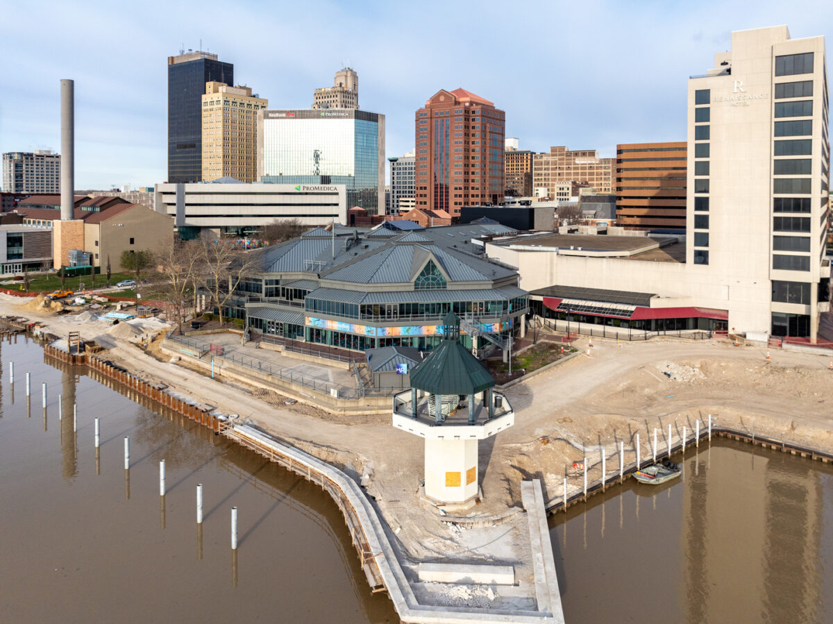 Historic preservation plays a meaningful role as well, most notably through the adaptive reuse of the on-site lighthouse, which is being restored as a visual and cultural anchor within the park. Delivered through a CMAR model, the Glass City Riverwalk continues to advance through close collaboration with eight subconsultants and major utility providers, transforming Toledo’s riverfront into a connected, resilient, and distinctly local public landscape.