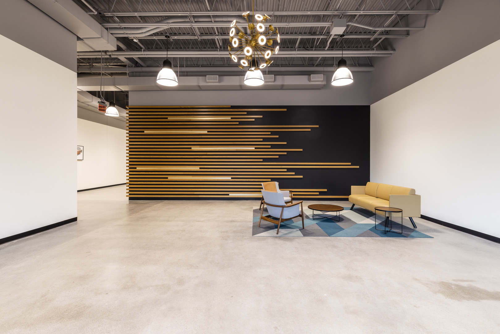 Design of the common areas revolves around modern-industrial. This decision was made to honor the history of the building, which—dating back to the late 1920s—originally serviced the automotive industry. As shown in the photos below, the design team has carefully selected finishes—like polished concrete floors with a monochromatic gray color palette—to support this vision.