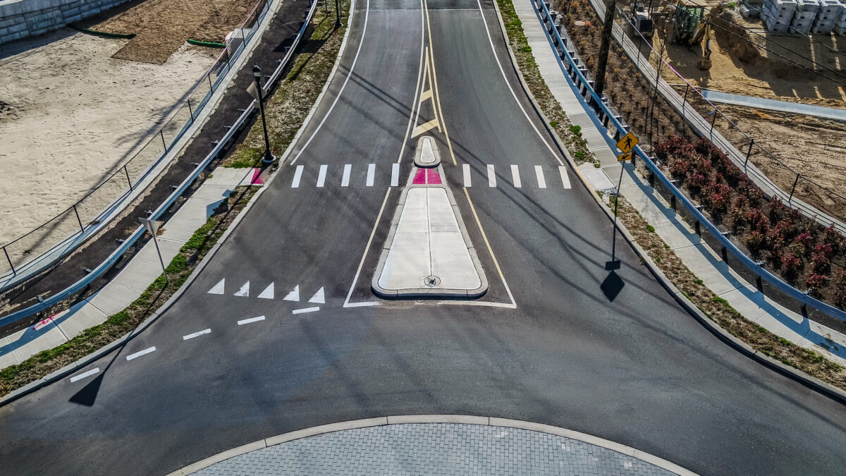 Supporting infrastructure was carefully coordinated to reinforce long-term performance. Gravity retaining walls, underground stormwater detention systems, and roadway drainage improvements were incorporated to address site constraints while maintaining reliability and resilience. Throughout design and construction, our team worked closely with regulatory agencies and project partners to align transportation improvements with the broader redevelopment effort.