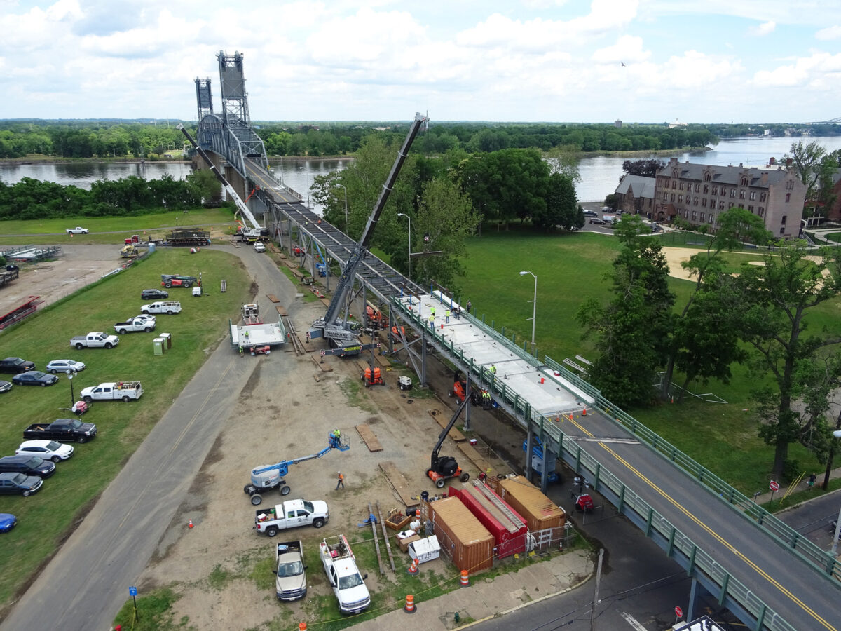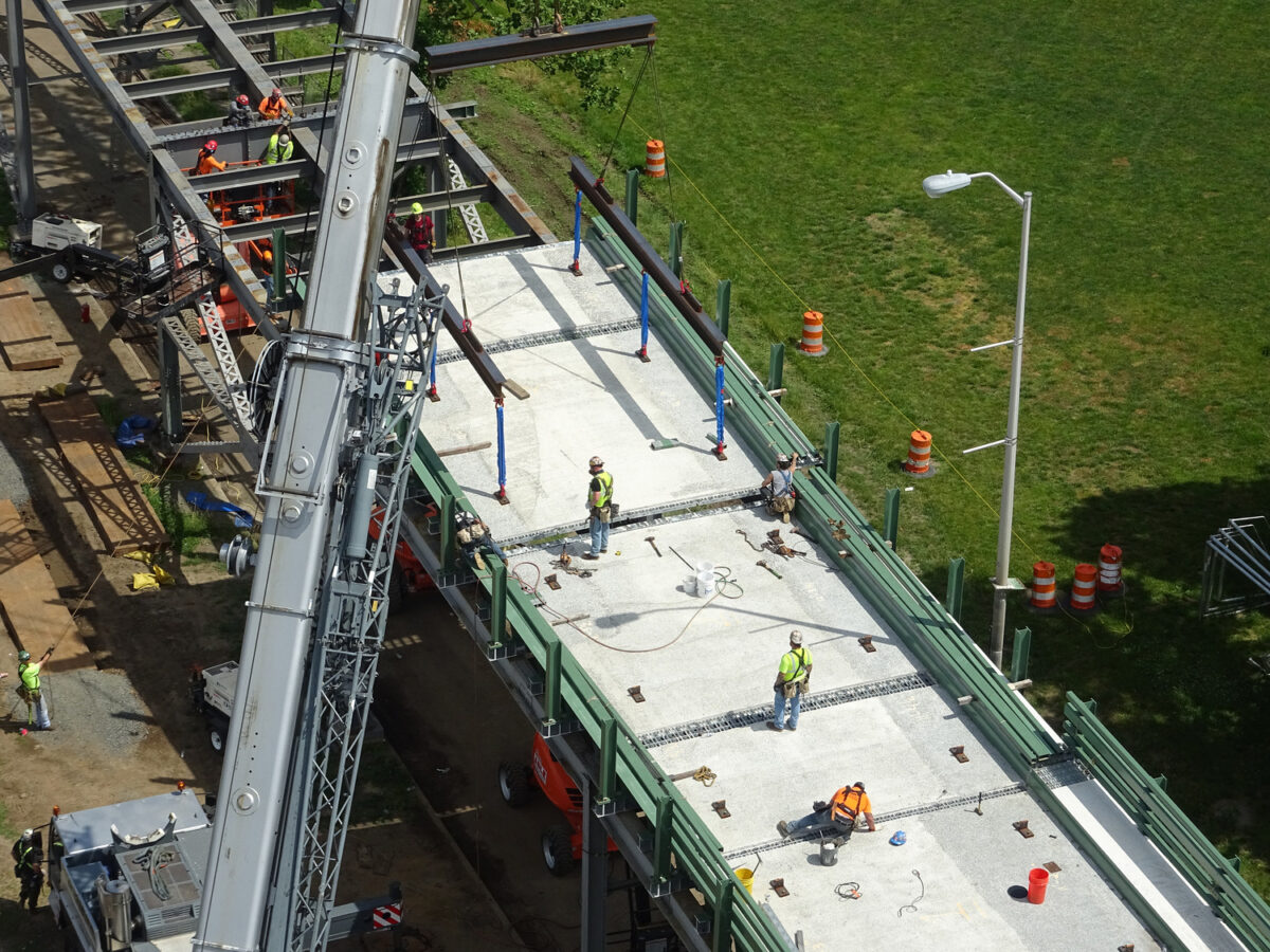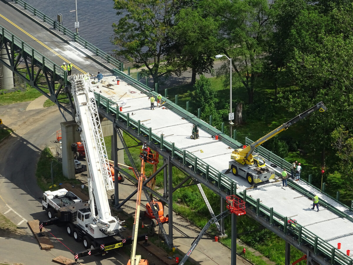 Pre-fabricated grid deck panels were assembled on-site, alongside new crossbeams, with strategic construction staging ensuring enhanced safety, cost efficiency, and timely completion. The result is a stronger, more modern bridge that meets the needs of both vehicular and pedestrian traffic.