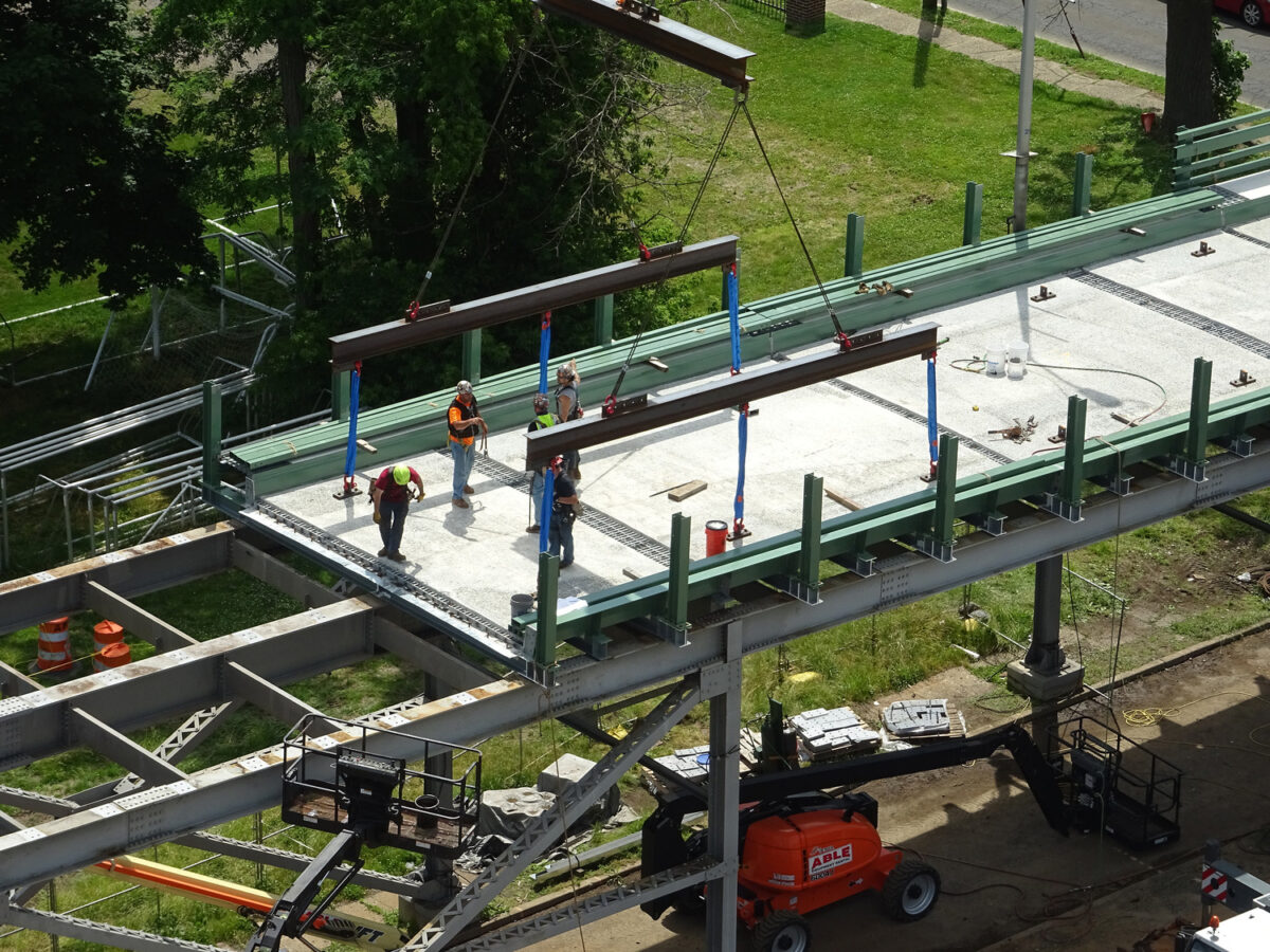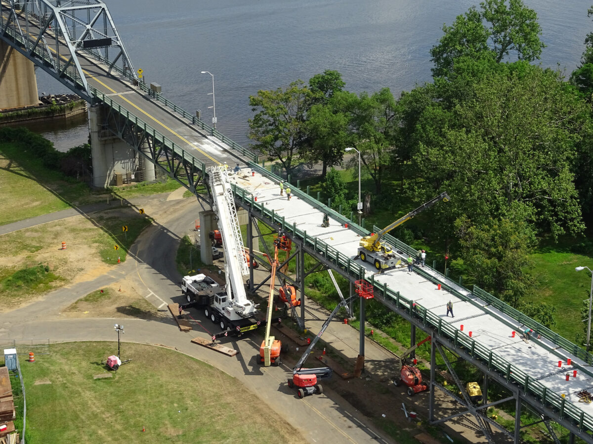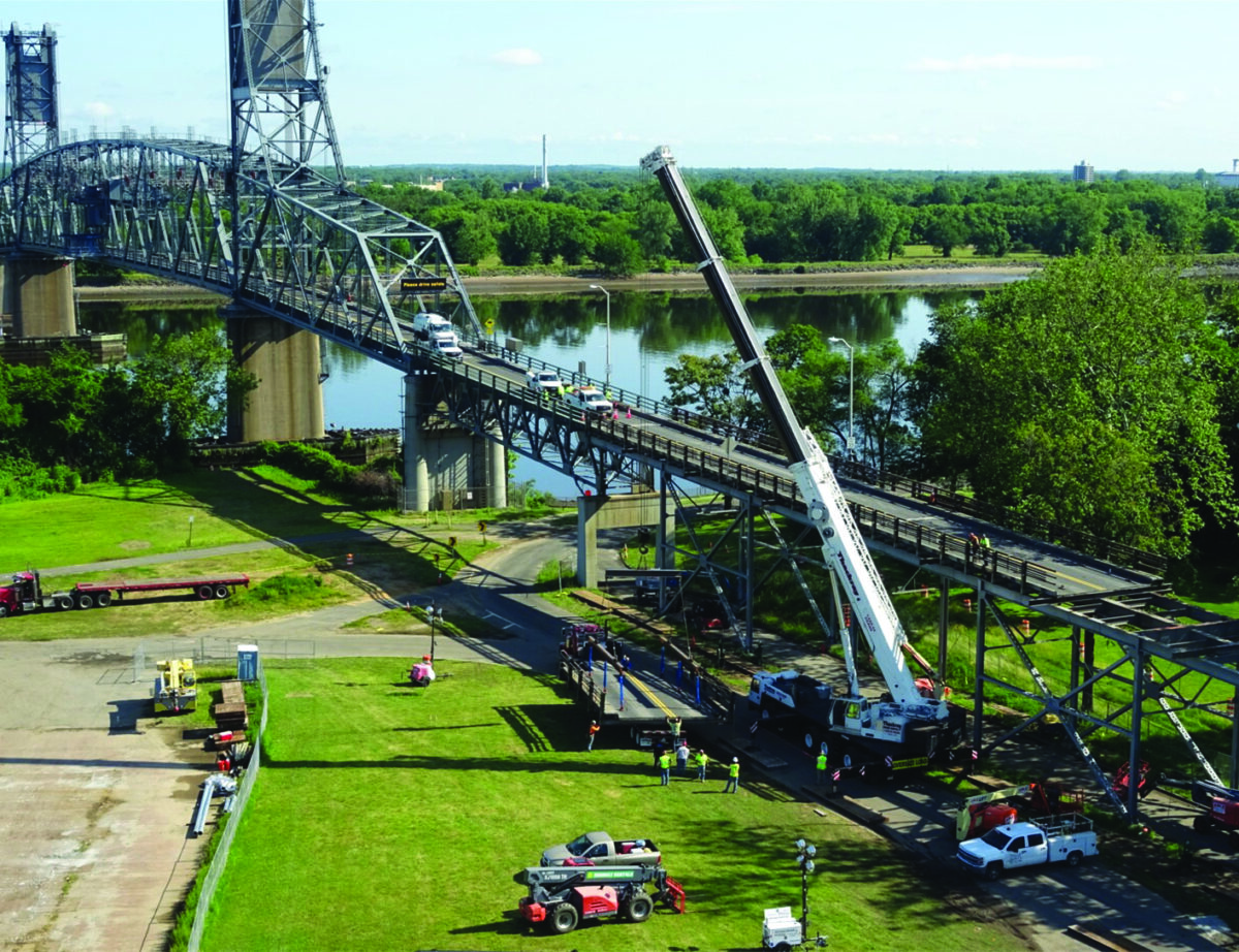 Pre-fabricated grid deck panels were assembled on-site, alongside new crossbeams, with strategic construction staging ensuring enhanced safety, cost efficiency, and timely completion. The result is a stronger, more modern bridge that meets the needs of both vehicular and pedestrian traffic.
