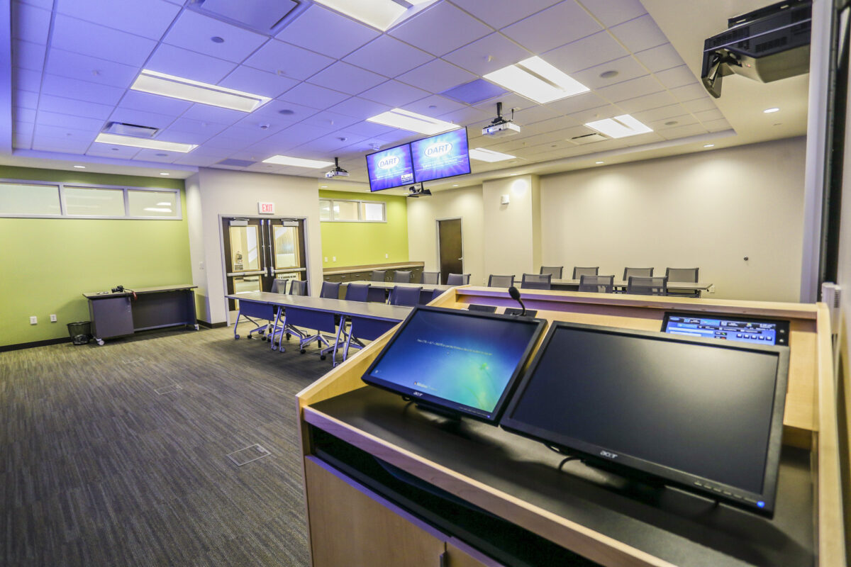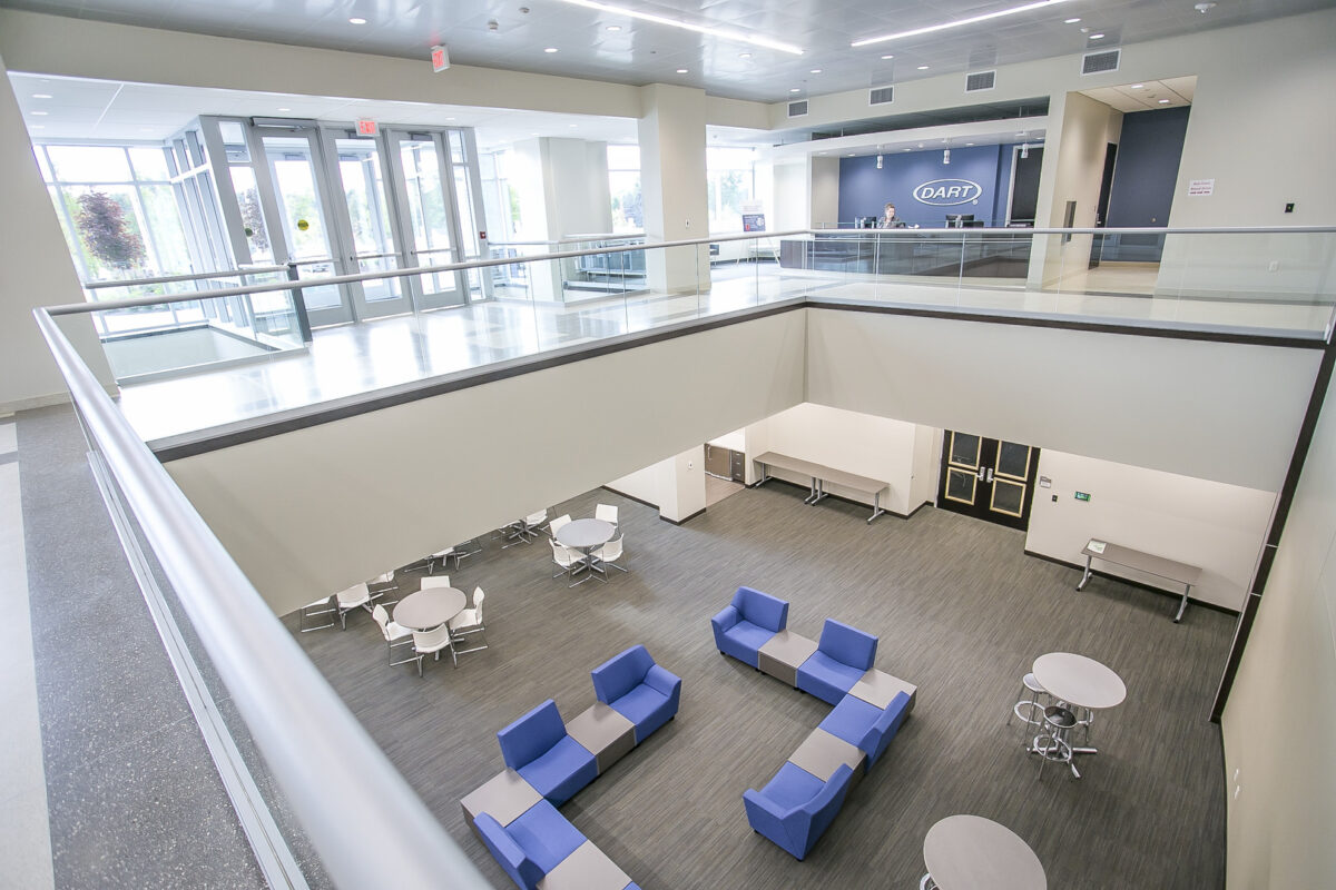 Beyond the walls, the design extends into thoughtfully integrated patios and balconies that soften the building’s scale and create welcoming outdoor spaces. Distinct entryways provide clear wayfinding for employees and visitors alike. The result is a facility that fosters collaboration at every turn while reflecting the innovative spirit at the heart of Dart’s research and product development.