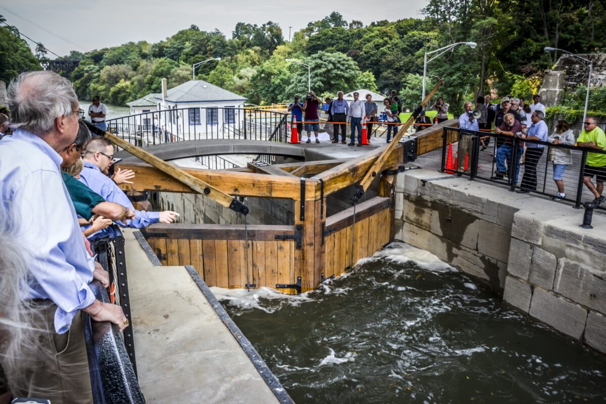 The Flight of Five has received little maintenance in the past century, resulting in sediment and debris buildup, the replacement of gates with concrete headwalls, shifted lock walls and cracked stone masonry blocks. It was up to our team not only to modernize the mechanization of the locks but to restore them with historical accuracy.