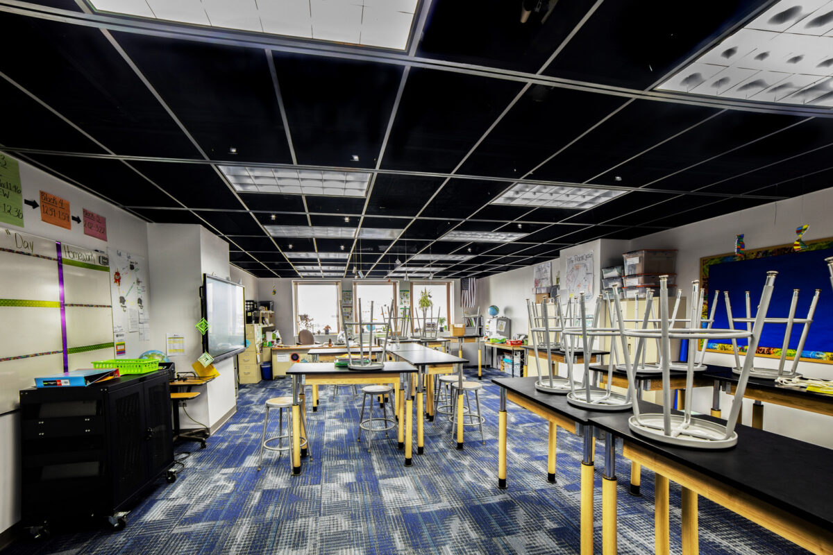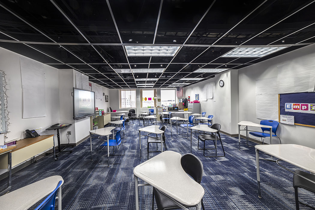 Our affiliates at Bergmann were integral in helping the Eugenio Maria de Hostos High School create a learning environment out of old office space in the Kodak Tower Commons. The school originally had 2 campuses, with K-6 on Zimbrich Street and Grades 9-11 at a campus on Joseph Avenue. The school wanted to add a 12th grade and move all high school students (grades 9-12) into one shared space in another part of their Joseph Avenue building. City of Rochester officials denied the school’s application to expand there, which is when they found space on the 5th floor of Kodak’s Building 10. Time was of the essence, as school was scheduled to be back in session in just 3 short months! The general contractor, LeChase Construction, hired Bergmann to do the code review and space renovation. The learning spaces take up about half of the 5th floor, with additional space reserved for expansion in the future. Students also share cafeteria and gym space on the 9th floor with building tenants.