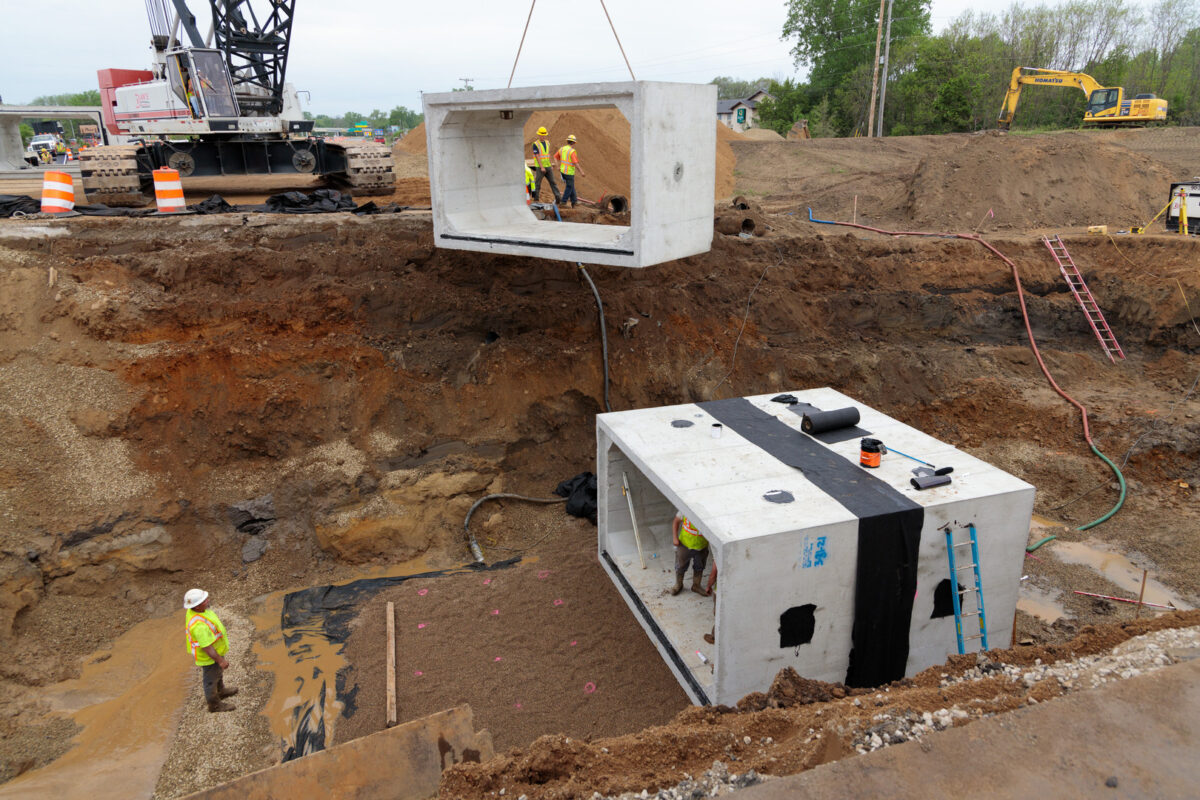 At the I-94/Elm Road interchange, a double roundabout configuration was implemented to better manage traffic patterns and reduce congestion. Supporting improvements included updated signing, pavement markings, traffic signals, and comprehensive drainage enhancements, such as culvert replacements and stormwater management systems, to improve both performance and resilience.