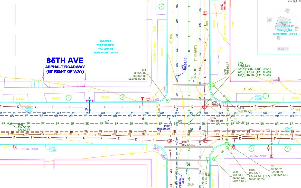 Colliers Engineering & Design provided land survey services, including a ground-based topographic survey within the street right-of-way, to prepare pre-design mapping for a utility installation in the Kew Gardens neighborhood of Queens. Additional requirements included running horizontal and vertical survey control, locating all visible utilities and utility mark-outs, and performing sewer and storm structure investigations. Our surveyors also provided subsurface utility engineering services, including the investigation and mark-out of existing underground utilities.
