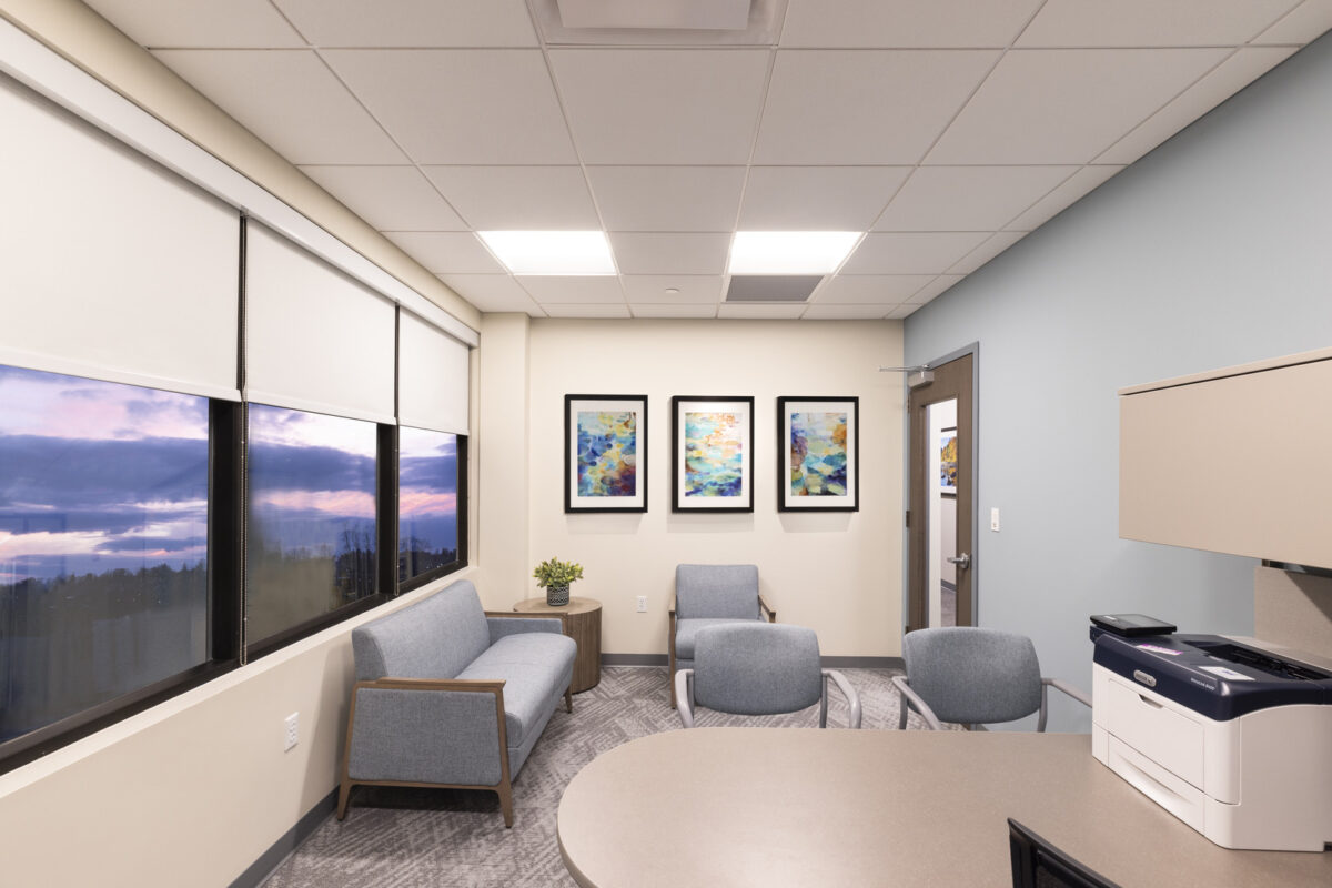 The program includes two conference rooms, five group therapy spaces, and thirty-three private offices, carefully configured to support both one-on-one consultations and group-based therapy. Nothing about this facility feels institutional. It feels intentional. Every element of the design reinforces a commitment to holistic care and community wellness, serving Norwalk and its surrounding region with the sensitivity and purpose that behavioral healthcare demands.