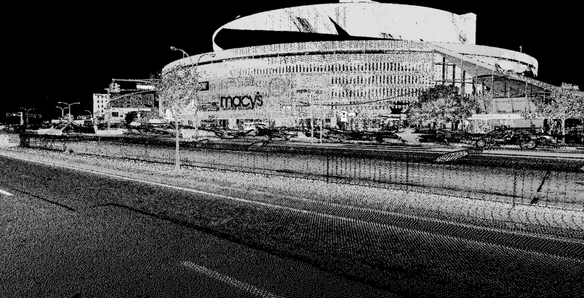 Our team supported this effort by capturing detailed, high-resolution data across approximately 29,000 linear feet of a 200-foot-wide corridor. Using mobile LiDAR technology, we mapped both main arterial roadways and adjacent service roads, creating a precise digital representation of the existing conditions.