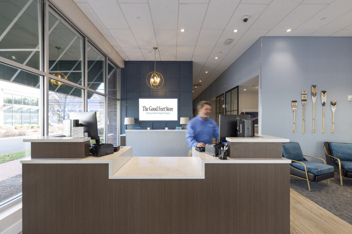 The result is a space that doesn’t just showcase product. It sets the stage for The Good Feet Store’s comprehensive arch support solutions and expert guidance, making every visit feel intentional and elevated.