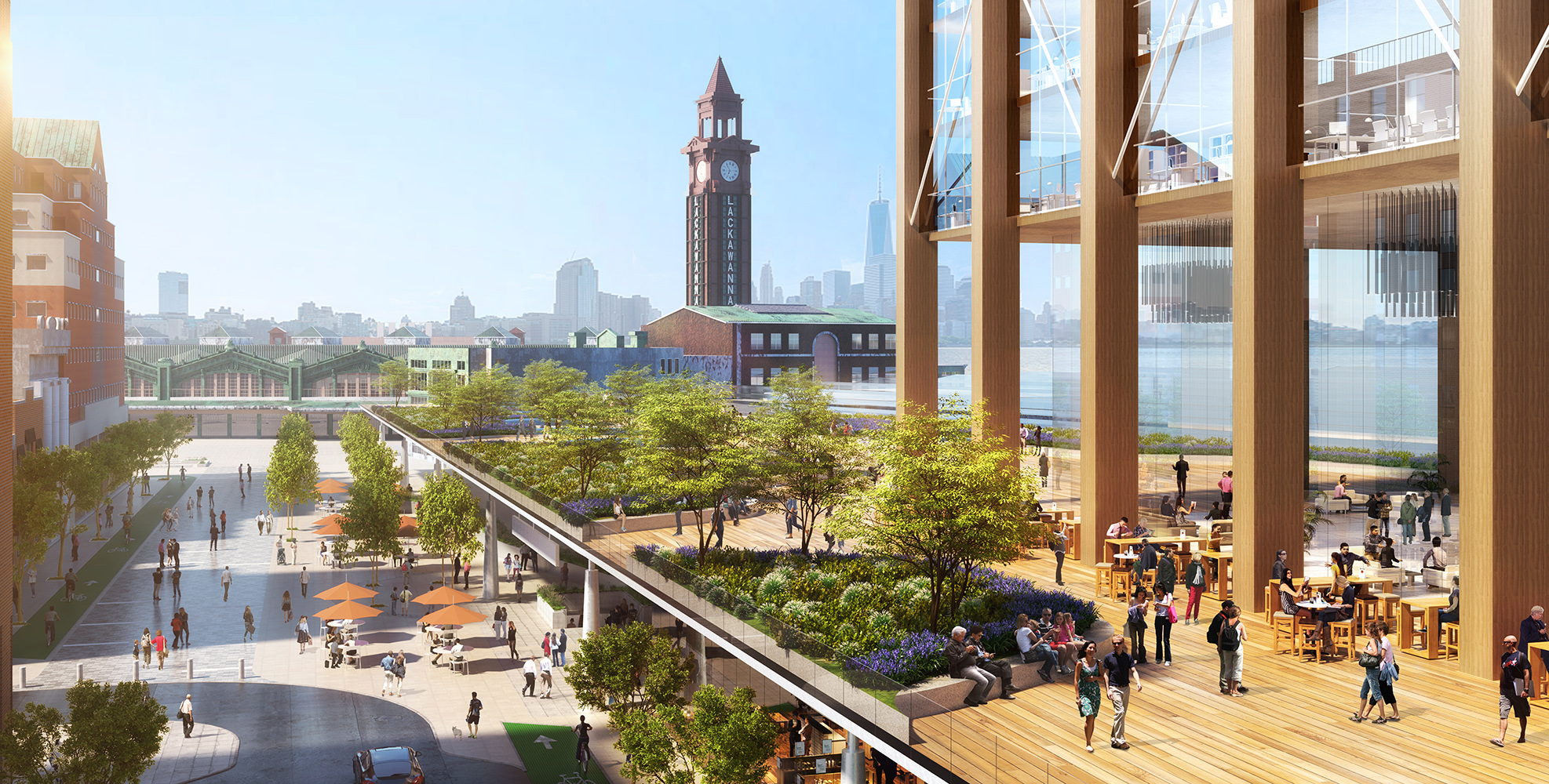 The ambitious redevelopment encompasses more than 1 million square feet of mixed-use development including office, residential, retail, and public spaces. Key components include the transformation of Hudson Place into a shared street enhancing circulation and mobility for the public, major upgrades to NJTRANSIT’s bus operations, and the rehabilitation of historic assets including the Ferry Terminal Building and Warrington Plaza.