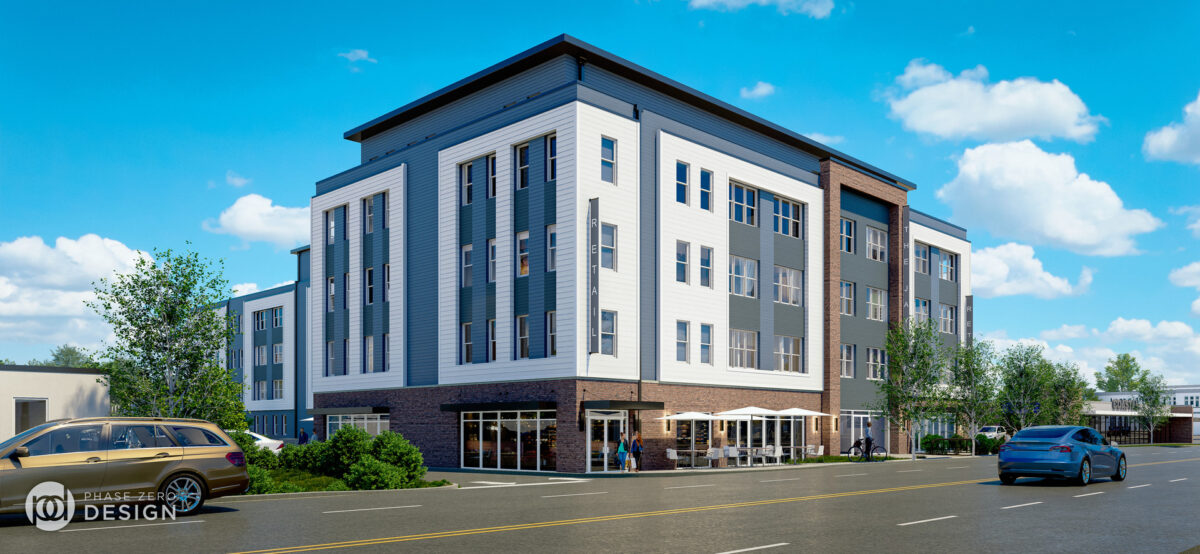 At ground level, 3,000 square feet of retail space split between two commercial tenants brings energy to the streetscape and gives the neighborhood a reason to gather. Above, residents enjoy carefully curated amenities including a fitness center, community lounge, two outdoor patios, and convenient parking.
