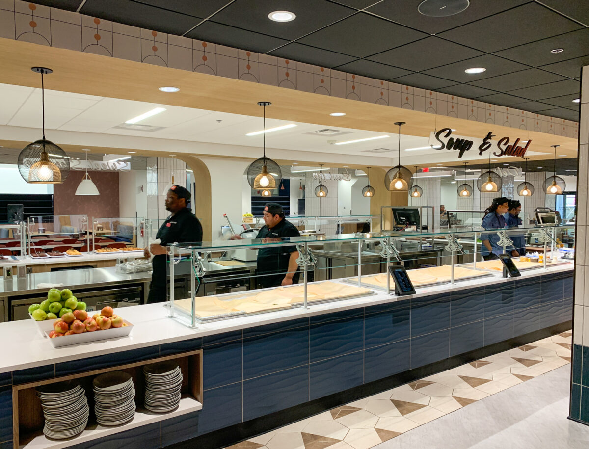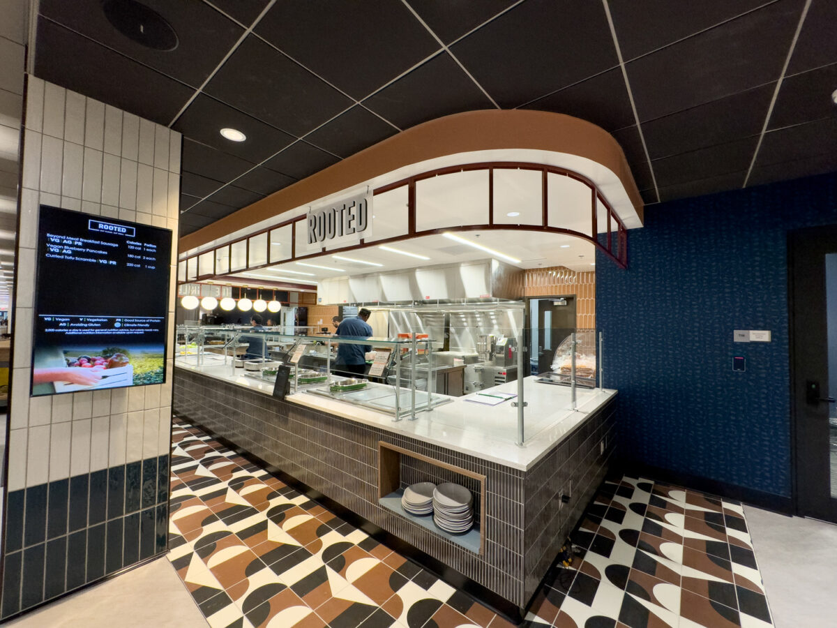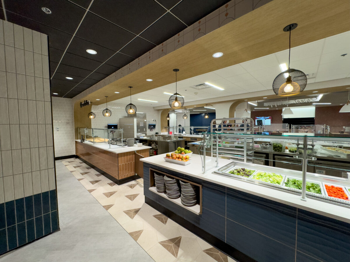 The Terrace Dining Room (TDR), American University’s largest dining facility, has been transformed into an industry-leading space that combines modern design with a variety of independent dining concepts. Driven by student feedback, which highlighted a desire for a more engaging and dynamic dining experience, the redesign reimagines TDR as a contemporary, fast-casual restaurant rather than a traditional dining hall.