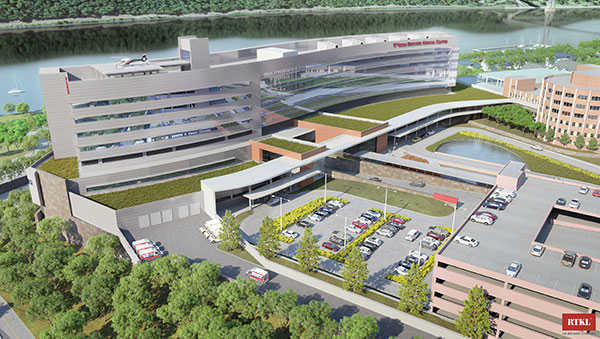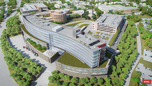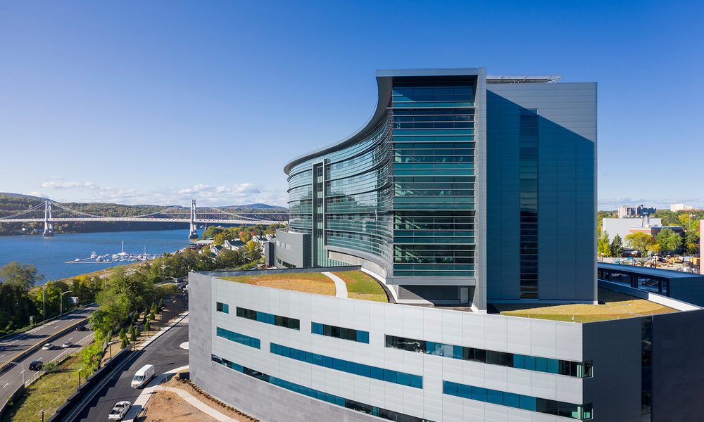 The $500 million new patient pavilion at Vassar Brothers Medical Center is a gently curving building situated along the shores of the Hudson River. Once completed, the new patient pavilion will be an eight-story, 752,000 SF state-of-the-art facility. It will include 264 private patient rooms, 30 critical care rooms, a 66-room emergency department, 12 surgical suites, and a 300-seat conference center.
