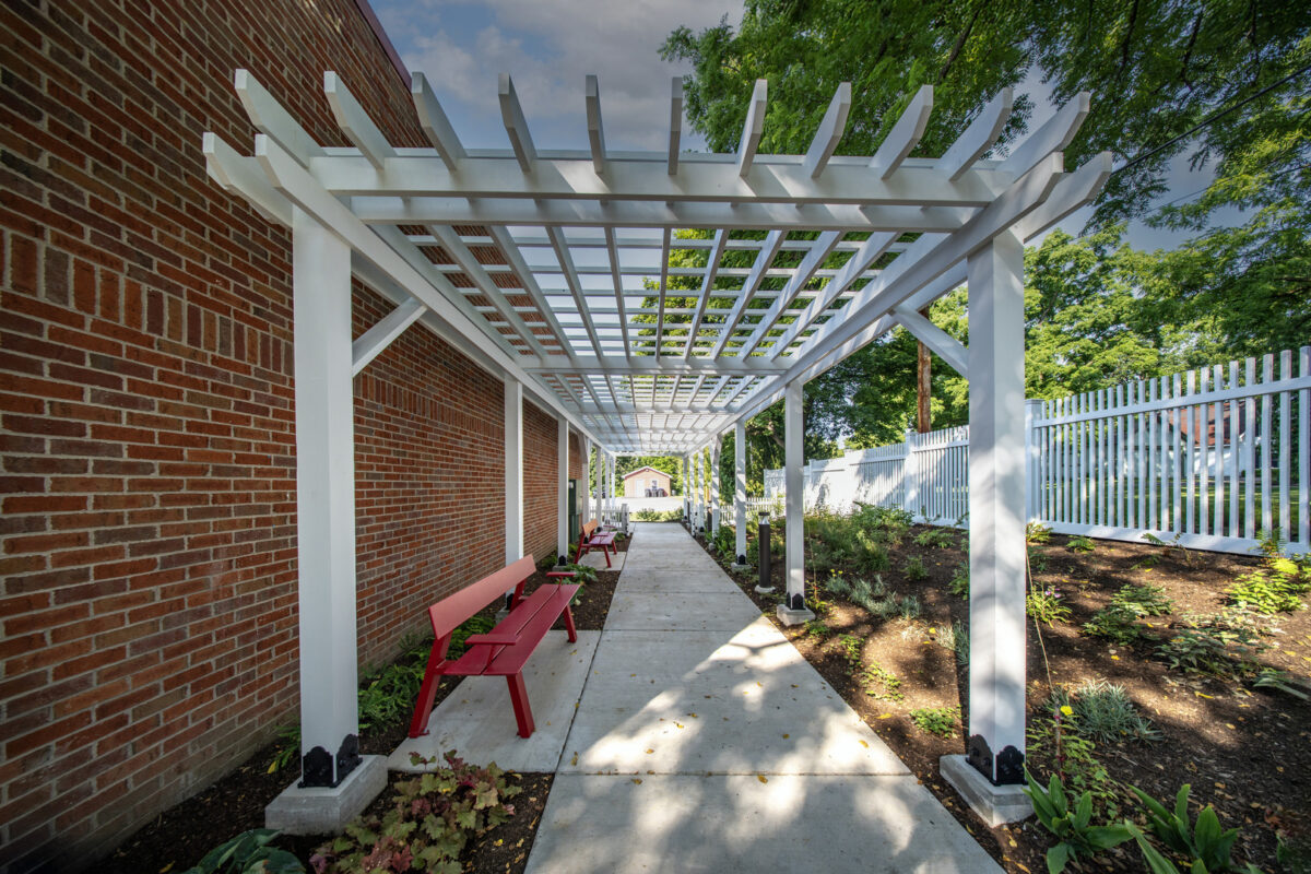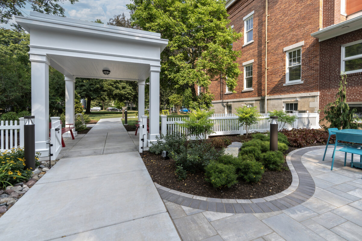 Quiet moments of reading, conversation, and learning now extend beyond the walls of Wood Library and into the landscape itself. The Wood Library Reading Garden transforms the library’s northern grounds in Canandaigua, New York, into an inviting outdoor space that supports reflection, programming, and connection. Developed during the COVID-19 pandemic, the garden responded to immediate disruptions while also serving as a long-term investment in community health, education, and access.