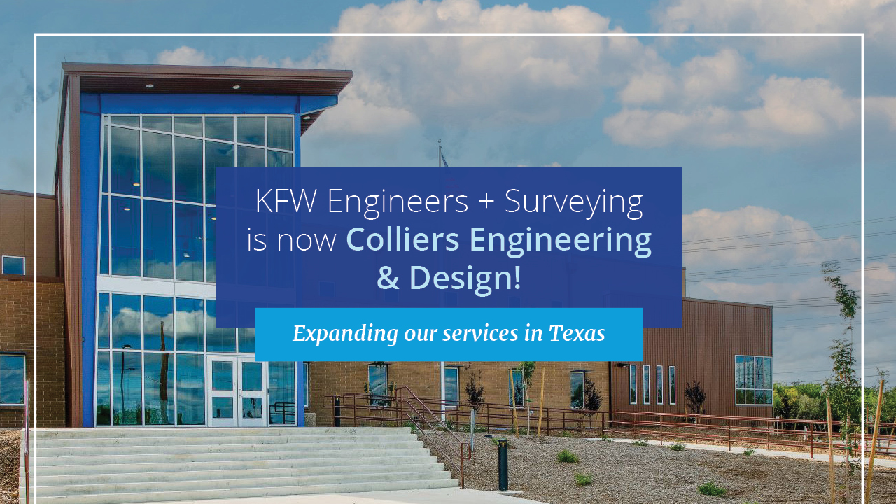 Colliers Engineering & Design (CED), is pleased to announce the rebranding of San Antonio-based KFW Engineers + Surveying (KFW) to Colliers Engineering & Design. In 2022, CED a leading, multi-discipline engineering, architecture consulting and design firm, acquired KFW creating a unique partnership enabling both firms to realize their growth objectives.