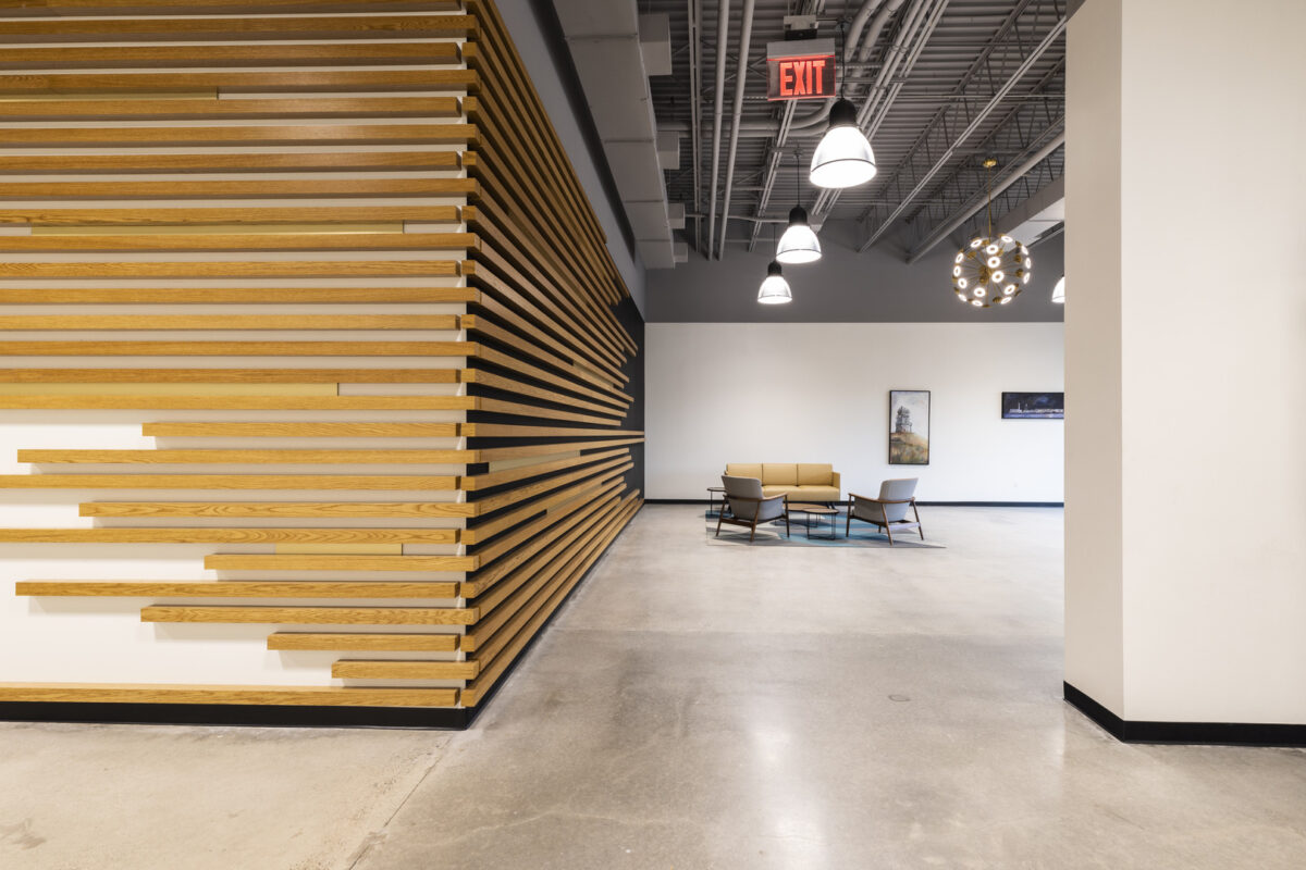 Design of the common areas revolves around modern-industrial. This decision was made to honor the history of the building, which—dating back to the late 1920s—originally serviced the automotive industry. As shown in the photos below, the design team has carefully selected finishes—like polished concrete floors with a monochromatic gray color palette—to support this vision.