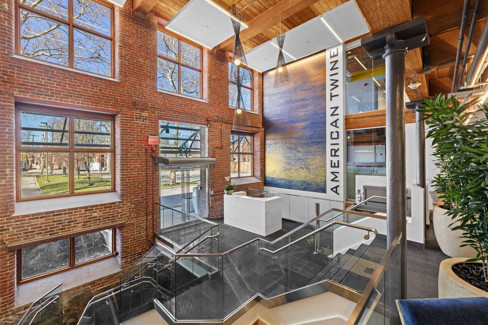 Our team has since led additional renovations focused on refreshing the lobby and shared spaces, enhancing the arrival experience and improving everyday functionality for tenants. Updated finishes and amenities were integrated with care, meeting modern workplace expectations while preserving the building’s historic fabric. Today, the American Twine Building offers a distinctive office environment that blends character, comfort, and authenticity within a walkable neighborhood close to restaurants, hotels, retail, and public transportation.
