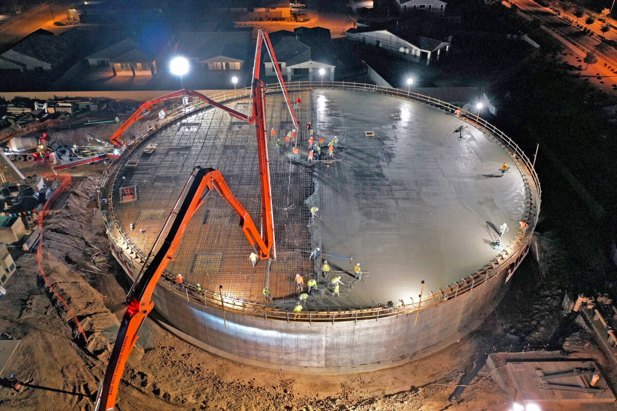 As Engineer of Record (EOR) for the Town of Queen Creek’s Church Farms East Water Storage Tank and Booster Pump Station project, our firm provided comprehensive engineering and construction management services. We designed and oversaw construction of a partially buried 3.0 million gallon concrete water storage tank and a 4,000 gallons per minute (GPM) vertical turbine booster pump station, complete with sophisticated electrical controls and equipment.