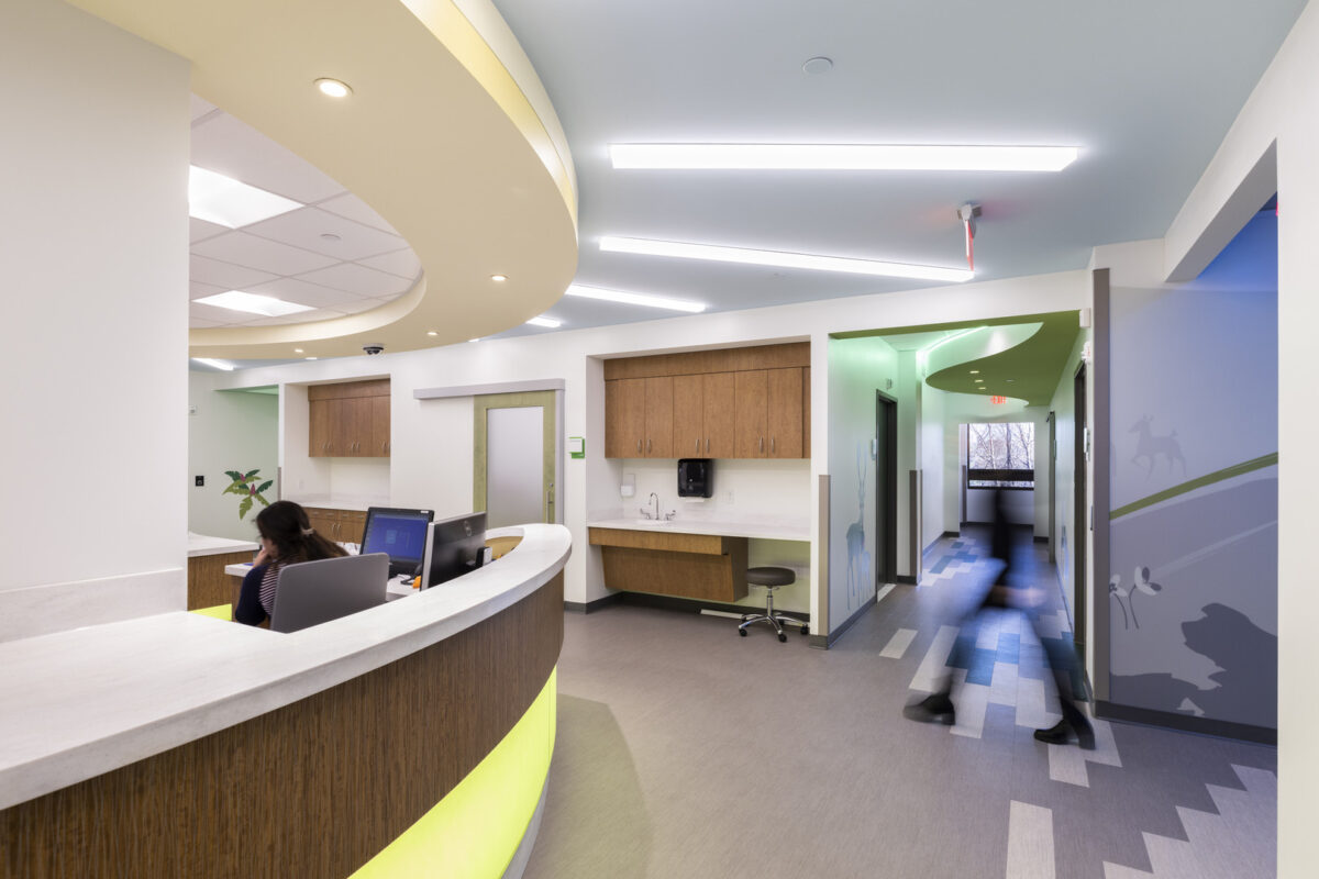 Not every healthcare project gets to reimagine what a visit to the doctor feels like. This one did. Located at Connecticut Children’s Hospital, this Pediatric Specialty Care Center was designed to transport young patients from the drab healthcare spaces of the past to the engaging and experiential caregiving suites of the future. The multi-specialty suite serves a broad spectrum of patients, from the youngest children to young adults, offering services including imaging, cardiac care, general care, rehabilitation, behavioral health, dietary support, and infusion therapy. The center includes 23 exam rooms, an X-ray lab, a casting room, and a physical therapy suite with three additional private treatment rooms. Each exam room is equipped for remote telemedicine to maximize efficiency and optimize the limited suite area.