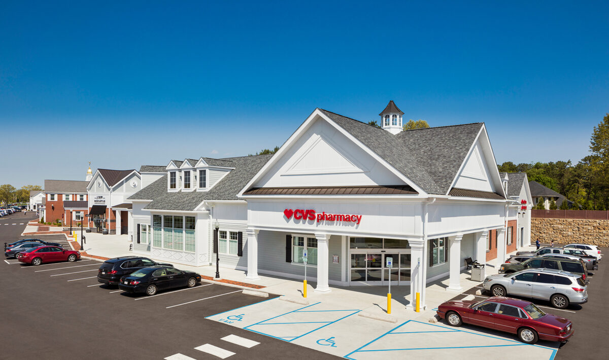 The result is a new 21,126-square-foot building thoughtfully designed to accommodate three major retailers: CVS, Verizon, and J. Crew Mercantile. The expansion merges seamlessly with the existing architecture through harmonious materials, scale, and detailing, ensuring the new construction reads as part of the original rather than an addition to it.
