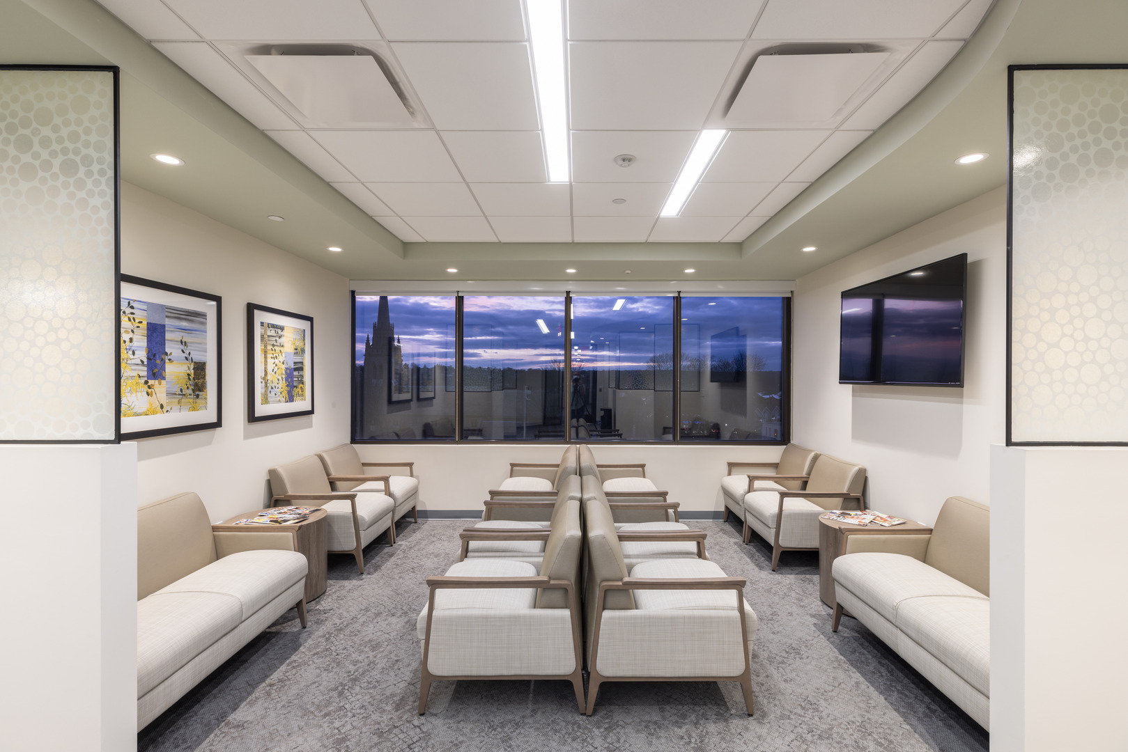 The facility features a welcoming lobby with discrete check-in areas and semi-private waiting spaces, all organized to maintain open sightlines and maximize natural light. The layout fosters a sense of ease and openness while respecting the individual need for discretion that is so essential in this setting.