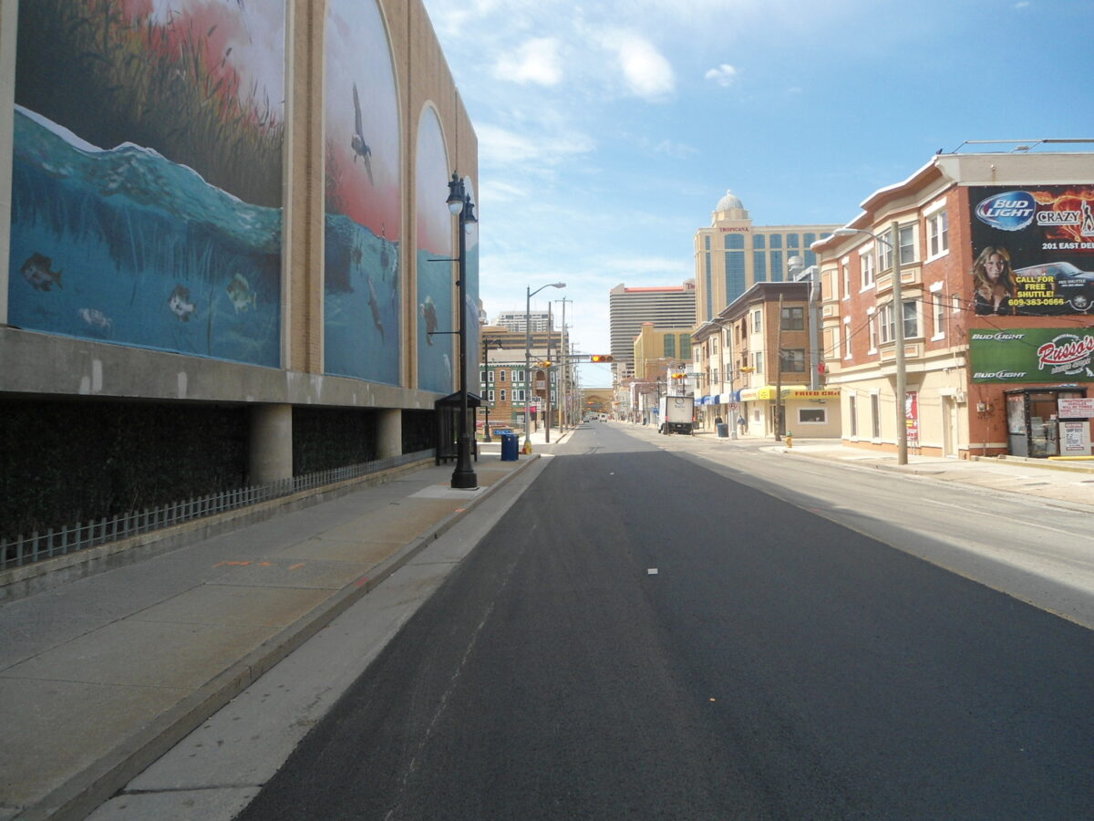 Due to the unique traffic peaking characteristics of Atlantic City and the “no outlet” condition of all the side streets between Pacific Avenue and the Boardwalk, the construction staging and maintenance of traffic had to ensure continued loading and pedestrian access to the many properties and casinos in the project vicinity.