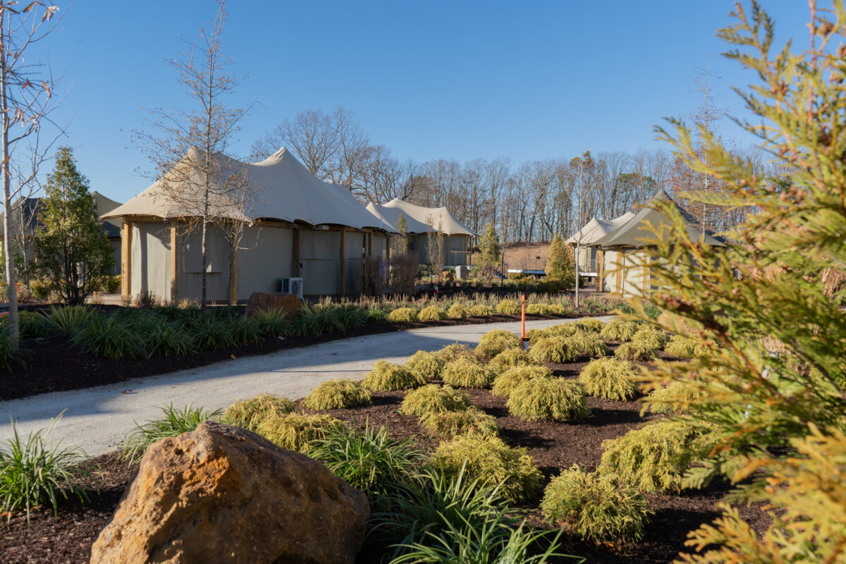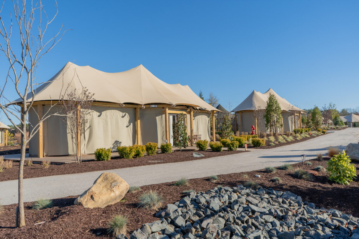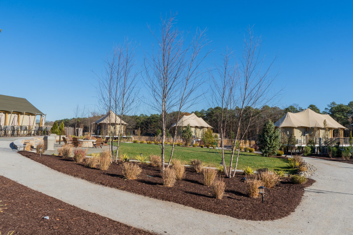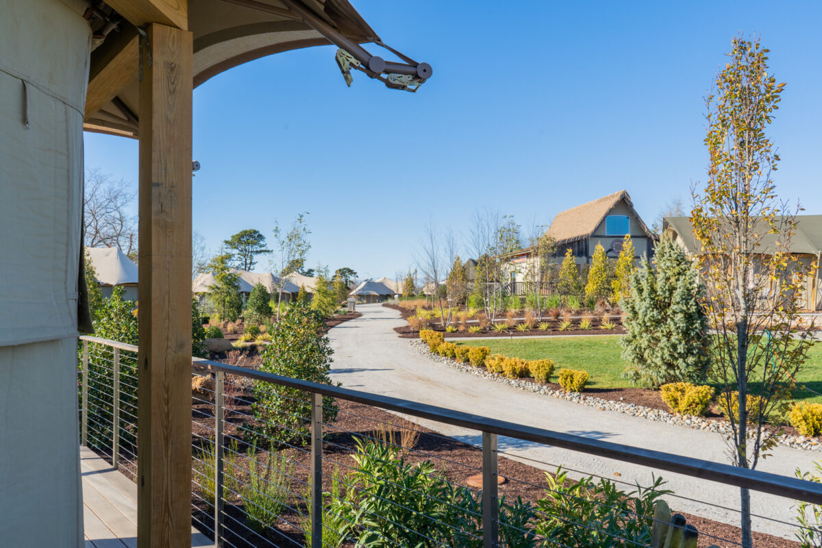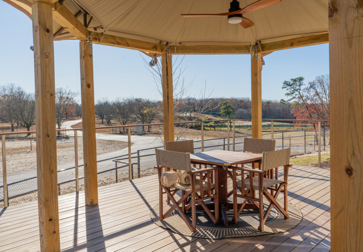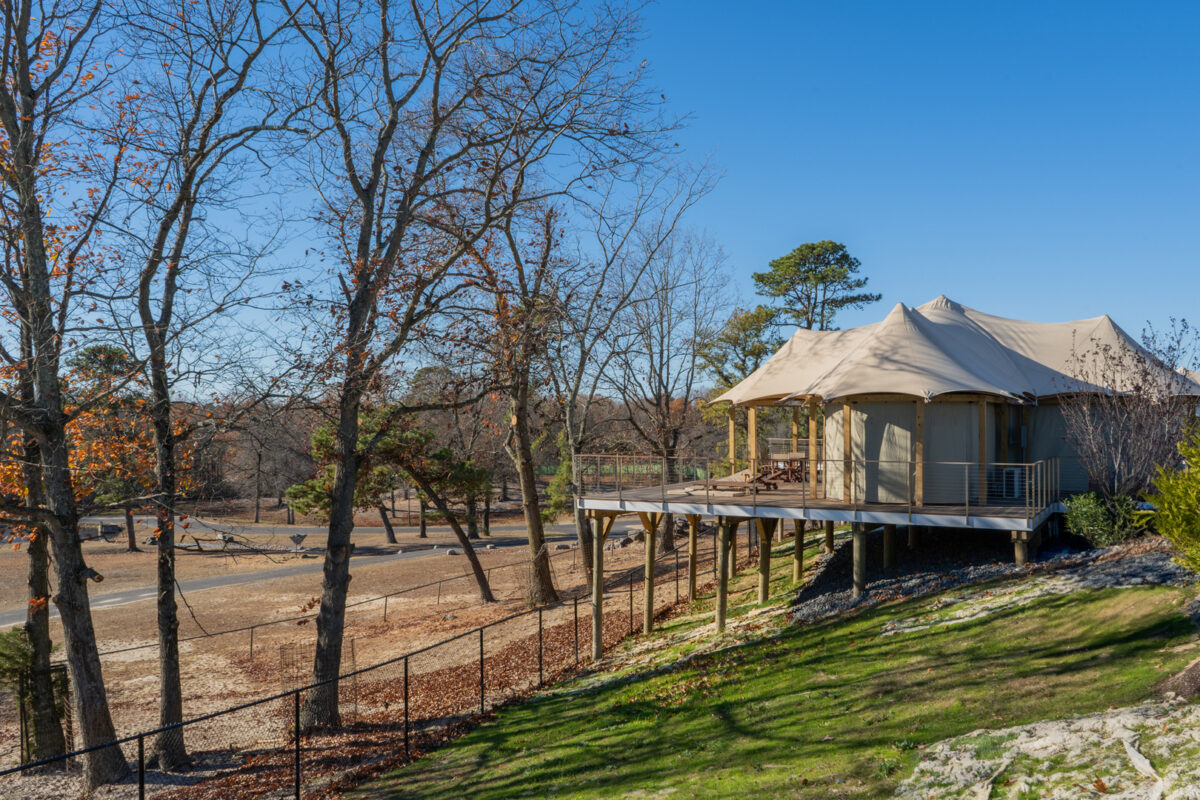 At the heart of the resort are 20 elevated Bushtec safari tents imported from South Africa, each designed to evoke the spirit of an African safari while delivering the comforts of a five-star stay. The accommodations include air conditioning, double-sink bathrooms, roll-in showers, and modern amenities, all oriented toward unobstructed views of the safari plains. To support these structures, our team designed a custom pile-supported timber deck system that met New Jersey’s building codes while maintaining the light-touch aesthetic essential to the guest experience.