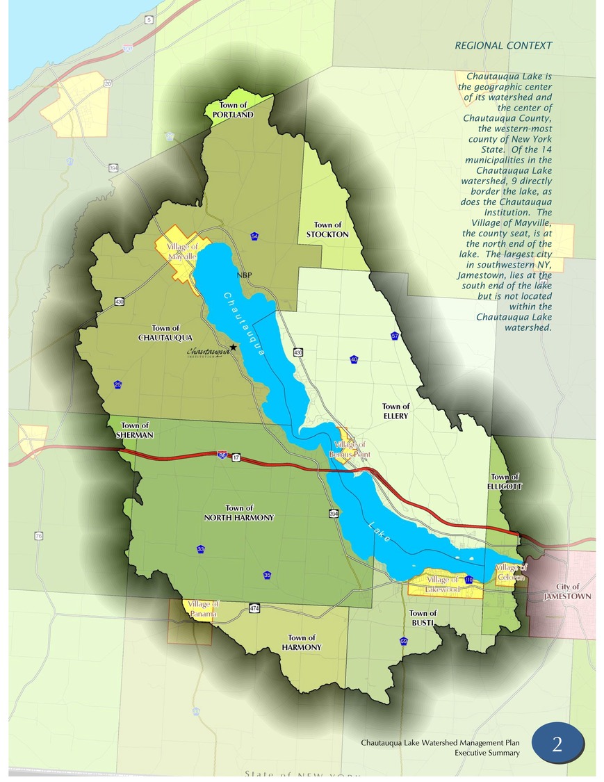 Chautauqua Lake has been at the center of life in western New York’s Chautauqua County for generations. Tens of thousands of people live along its shores, tourists spend over $70 million annually enjoying its waters, and lakefront property owners contribute roughly a quarter of local real property taxes. But the lake is impaired. Decades of nutrient loading from sewage, agricultural runoff, urban stormwater, and eroded streambanks have accelerated its aging, driving harmful algal blooms and degrading the water quality that the region’s economy and ecology depend on.